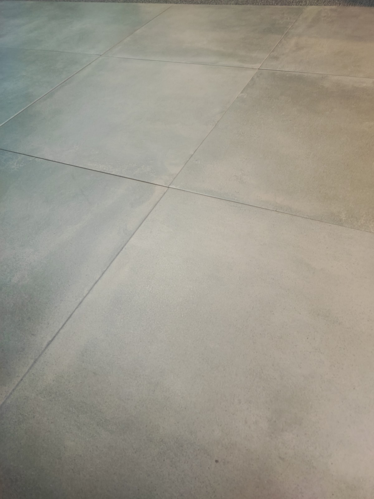 coloris nuagé brun /taupe , finition MATE , effet béton brut , type sol industriel , 1er choix.