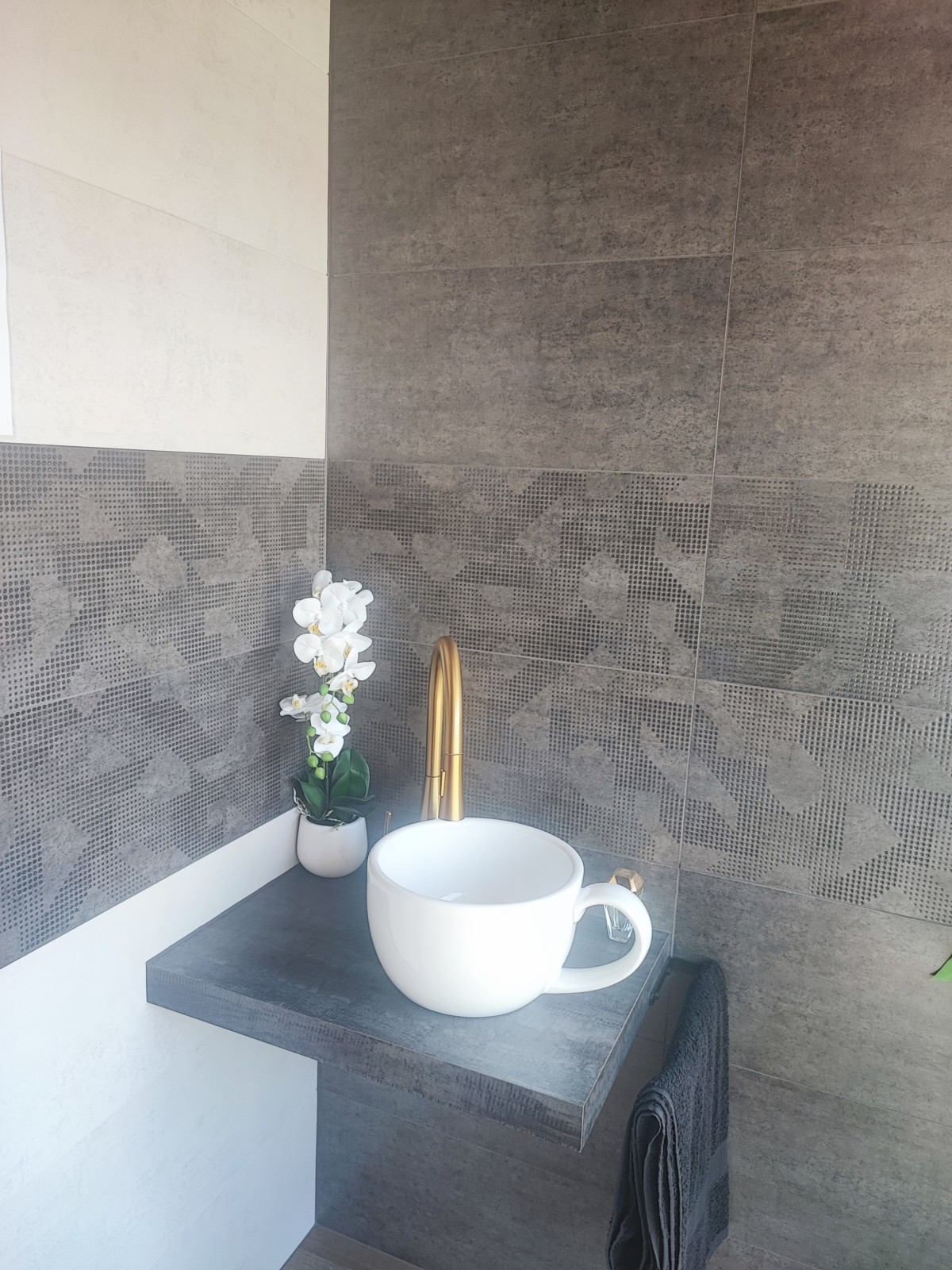 Surface douce et satinée / 3 coloris au choix : crème ou grafito ( effet d'oxydation ) ou motif structuré grafito .