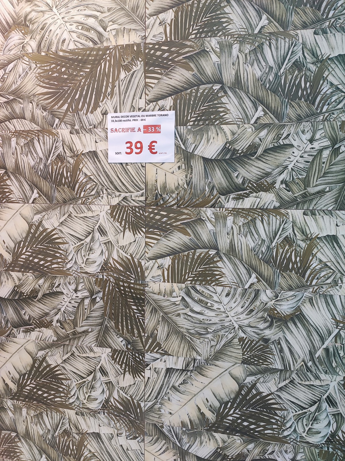 Peut-être mélangé avec une dizaine de carrelages effet ciment ou marbre , vendus aussi au prix promo de 39 € le m2.